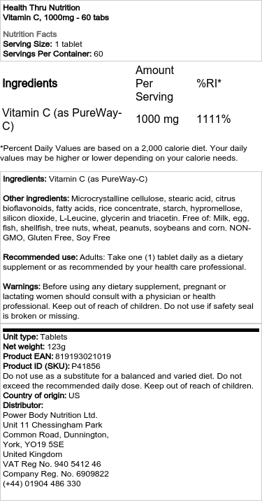 Health Thru Nutrition – C-vitamin, 1000 mg, 60 tabletter