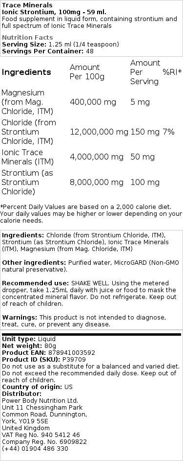 Utforska kraften i Trace Minerals – Ionisk Strontium, 100 mg – 59 ml, ett högkvalitativt kosttillskott designat för att stödja en hälsosam livsstil.Vår produkt är särskilt framtagen för att passa alla,inklusive veganer,och är helt fri från gluten.