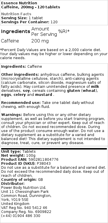 Essence Nutrition – Koffein, 200mg – 120 tabs