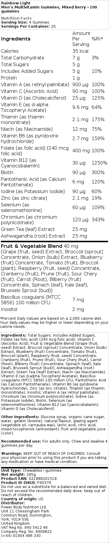 Rainbow Light – Multivitamingummin för män, blandade bär, 120 stycken