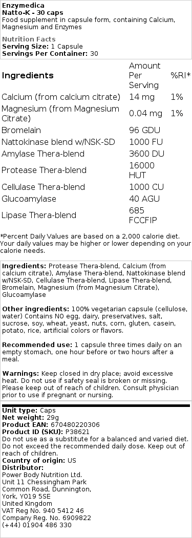 Enzymedica – Natto-K, 30 kapslar