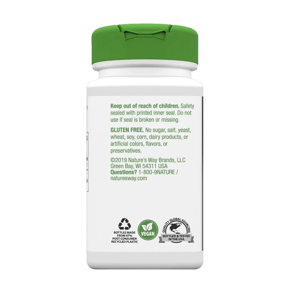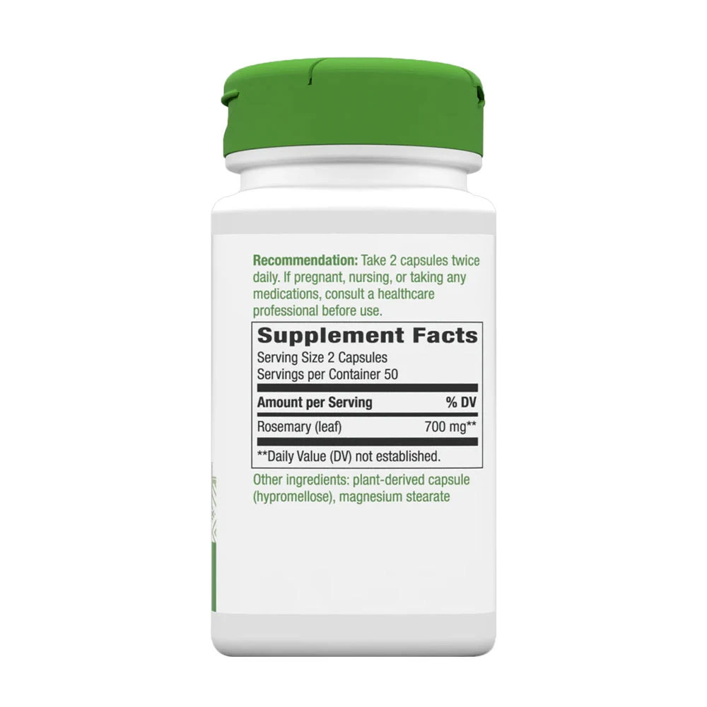 natures Way Rosemary Leaf innehåller noggrant utvalda rosmarinblad, kapslade i vegetabiliska kapslar.Produkten är fri från gluten och passar perfekt för veganer och alla som vill undvika animaliska produkter.