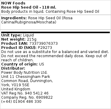 NOW Foods – Rose Hip Seed Oil – 118 ml