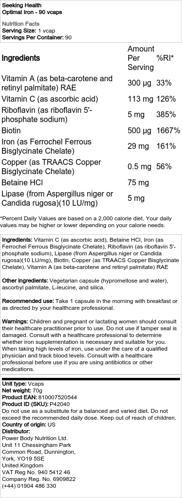 Upptäck Seeking Health – Optimalt Jern, ett högkvalitativt kosttillskott speciellt framtaget för att stödja din hälsa. med sin veganska formula och noggrant utvalda ingredienser är detta tillskott ett utmärkt val för alla som söker ett effektivt järntillskott.
