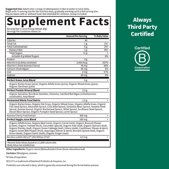 Jag gillar verkligen de ursprungliga perfekta grönsakerna, och även om detta har ytterligare grönsaker, tycker jag bara att skillnaden är försumbar med tanke på prisförändringen. Jag tycker att detta är överdrivet dyrt från livets trädgård, och det går helt enkelt inte att underhålla hela året. För mig är grönt fantastiskt, 100% och jag tycker ärligt talat att alla borde ha det, även om de äter mycket frukt, eftersom fördelarna och näringsämnena är så bra, men det här är för dyrt att ha året runt. Garden of life är de bästa men de ursprungliga perfekta matgrönsakerna är ett bättre val för mig för dem som har en budget. Om det inte finns någon budget, så är detta uppenbarligen premiumgreenerna du kan få 🙂