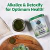 Rå Ekologisk Perfekt Mat Alkaliserare & Detoxifierare med smak av citron och ingefära är en juiced green superfood som innehåller en blandning av spirulina och andra gröna ingredienser. Den är utformad för att stödja kroppens naturliga balans och bidrar med antioxidanter och näringsämnen. Perfekt som ett komplement i en hälsosam kost.