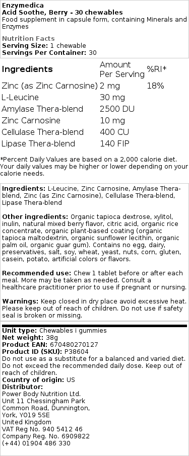 Enzymedica – Acid Soothe, Berry – 30 tyggetabletter