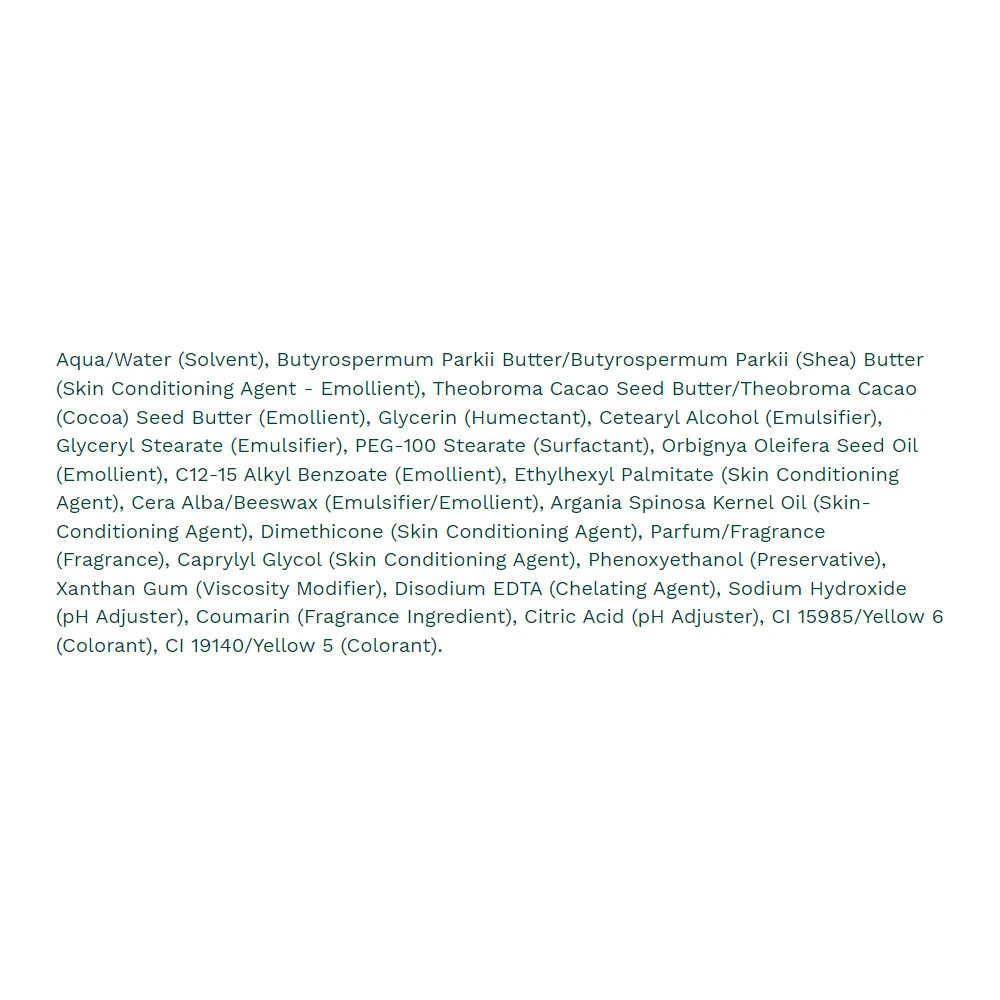 The Body Shop Argan Body Butter är berikat med arganolja, känt för sina näringsrika egenskaper. Arganoljan används ofta inom skönhetsvård för sin förmåga att djupt återfukta och revitalisera huden, tack vare dess höga innehåll av E-vitamin och fettsyror.