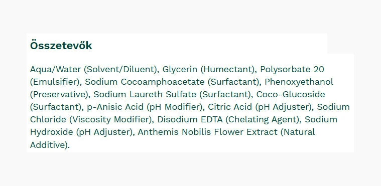 Huvudingrediensen i The Body Shop Camomile Cleansing Balm är kamomill, som traditionellt används för sina lugnande och mjukgörande egenskaper. Produkten innehåller även andra naturliga oljor och extrakt som bidrar till att huden känns ren, återfuktad och mjuk efter användning.