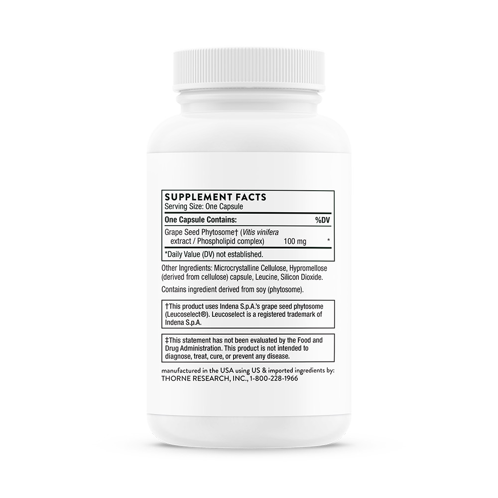 Huvudingrediensen i Thorne Research OPC-100 är extrakt från druvkärnor, vilket traditionellt används för dess antioxidativa egenskaper.Druvkärnextraktet hjälper till att neutralisera fria radikaler i kroppen.