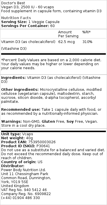 Doctor’s Best – Vegansk D3, 2500 IU, 60 kapslar