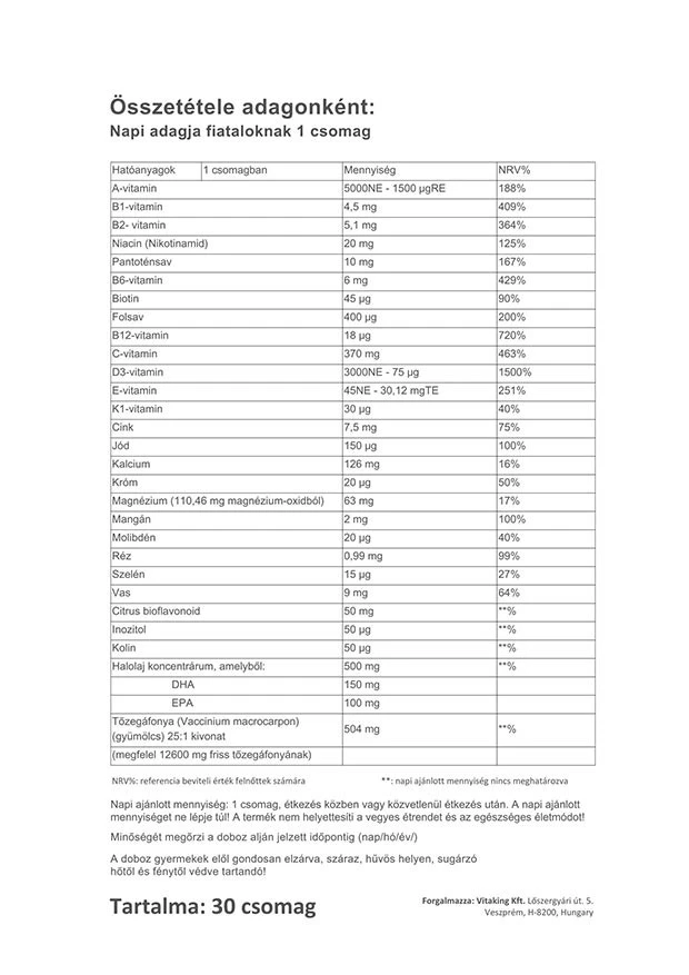 Vitaking – Multivitamin Teen Pack 365, 30 paket